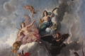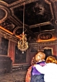最著名部分是二楼的“镜厅”尽显当年皇室的奢华之风,是凡尔赛宫不同于其他皇宫的地方。“镜厅”呈长方形,73米长、14米宽,400多块的镜片分别装在17扇落地窗和四周的墙壁上,镜子由483块镜片镶嵌而成,将外面的蓝天、绿树都映照出来,别有一番景色。拱形天花板上是勒勃兰的巨幅油画,描绘了中世纪人们生活场面的巨幅油画(油画内容是路易十四刻意要追求的效果,表现的都是泰承路易十四在1661到1678年间的统治,这些颂扬国王的艺术增添了皇位上的光环)。厅内两旁排有罗马皇帝的雕像和古天神的塑像,并有3排挂烛台、32座多支烛台和8座可插150支蜡烛的高烛台,经镜面反射可形成3000支烛台,映照得整个大厅金壁辉煌。站在厅堂中央,人们可在各角度的巨镜中,看到自己一连串由大而小的影子。当年皇室贵族尽情欢乐、豪华奢靡的生活由此可见一斑。